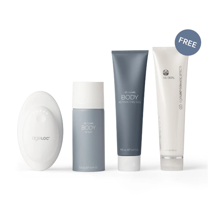 - ageLOC telové sérum – skvelé „kombo“ na boj s prejavmi starnutia, celulitídou, ovisnutou pokožkou na ramenách, bruchu a podobne.